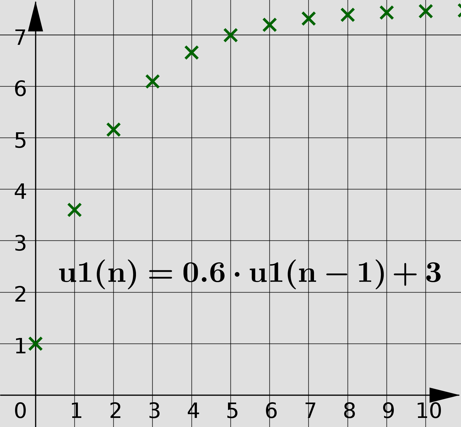 Zum Beispiel Nr. 12 (1): \[x_n=0,6x_{n-1}+3\mbox{; }x_0=1.\] Der Anfangswert ist \(x_0=1\), also tippt man: